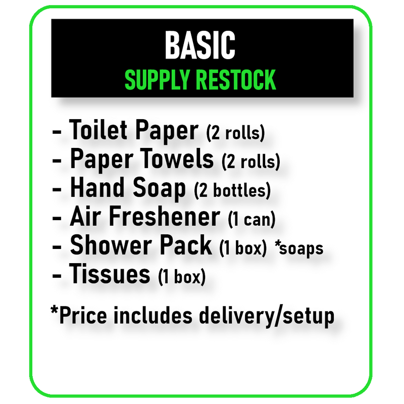 Restocks must be scheduled at least 24 hours in advance. This ensures we have time to shop, prep, and deliver everything properly. We do not offer rush or same-day emergency restocking.