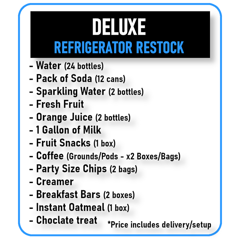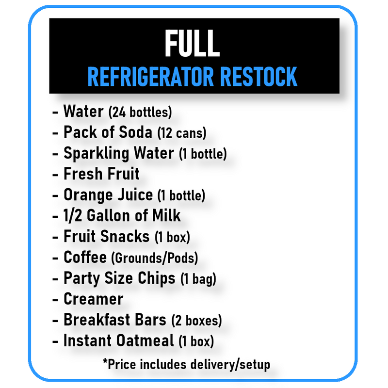 Restocks must be scheduled at least 24 hours in advance. This ensures we have time to shop, prep, and deliver everything properly. We do not offer rush or same-day emergency restocking.